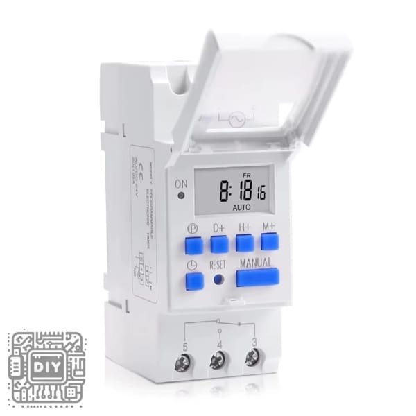 Automate your electrical devices and achieve significant energy savings with the 7-Day Programmable Digital Timer Switch. This DIN rail-mounted timer is designed for precise scheduling of lighting, heating, ventilation, and industrial equipment. Featuring an easy-to-program digital interface, it allows you to set up to 16 on/off programs per day, with different schedules for each day of the week. This provides ultimate flexibility for complex automation needs in homes, offices, commercial buildings, and factories. With a robust 16A/220V AC rating, it can control a wide range of high-power appliances and machinery. The built-in battery backup ensures your settings are retained during power outages, guaranteeing uninterrupted operation. Installs easily on a standard DIN rail in your electrical cabinet for a professional and integrated solution.