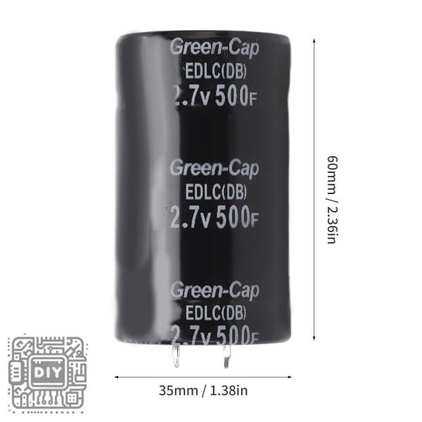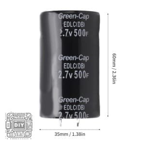 Harness massive energy storage capabilities with the SAMWHA 2.7V 500F Super Farad Capacitor. This high-performance supercapacitor delivers exceptional power density in a compact 35x60mm package, offering rapid charge/discharge cycles and long service life for demanding energy storage applications. Ideal for backup power systems, energy harvesting, motor starting, UPS systems, and high-power electronic projects