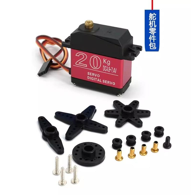Upgrade your RC experience with our 20kg Waterproof Digital Servo, the perfect blend of strength, speed, and resilience. Designed for hobbyists who demand reliable performance, this servo is an ideal upgrade for RC cars, trucks, crawlers, and large-scale helicopters. It delivers a powerful 20kg-cm of torque, ensuring your model handles tough obstacles and high-stress maneuvers with ease. The precision-engineered metal gears provide exceptional durability, resisting wear and tear from intense use. Encased in a waterproof shell, it is protected from splashes, dust, and mud, making it perfect for off-road adventures. The included 25T servo arm offers a secure and universal fit. Get responsive control, robust power, and lasting reliability for your favorite RC models.