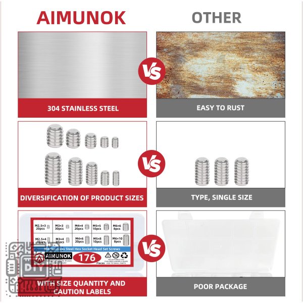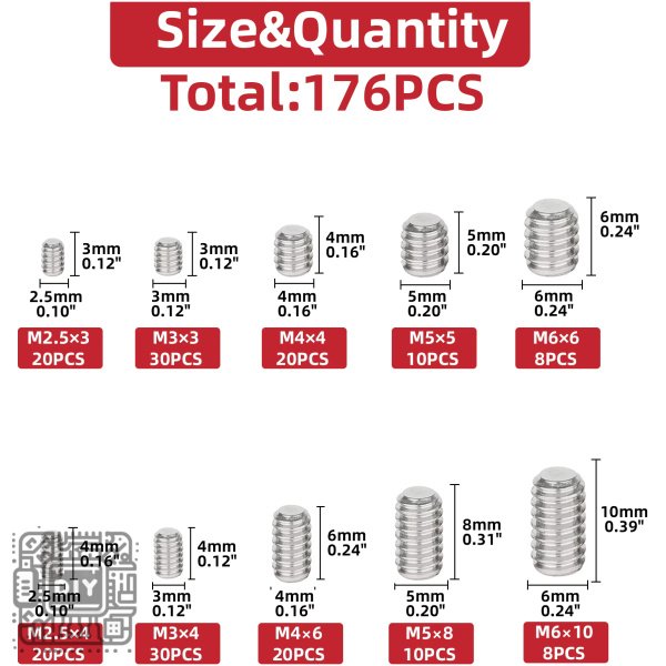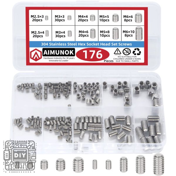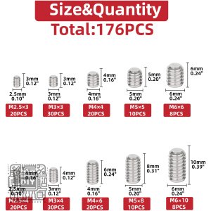 Complete your fastening needs with this comprehensive 176-piece assortment box of 304 Stainless Steel Hex Head Screw. Engineered for durability and corrosion resistance, these high-quality hex bolts are essential for a wide range of applications including machinery assembly, furniture construction, automotive repairs, DIY projects, and general maintenance.