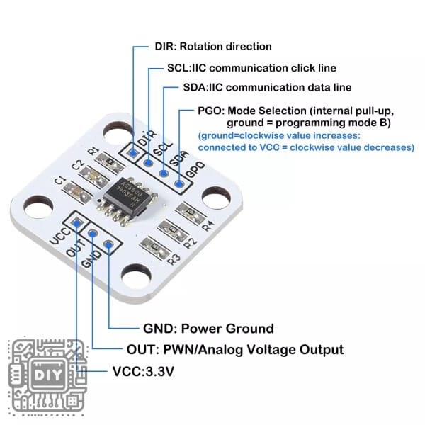 مستشعر زاوية مغناطيسي AS5600 12-بت – وحدة مشفر وضع عالية الدقة