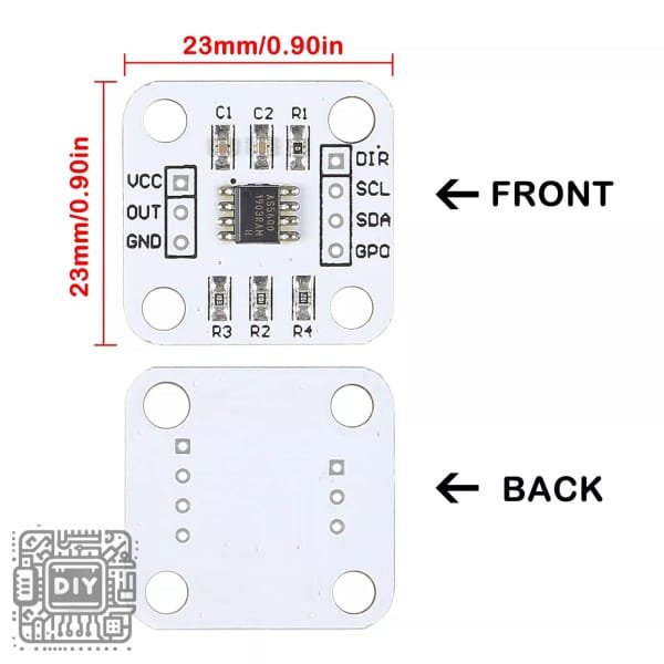 • الواجهة: رأس 5 دبابيس (VCC, GND, OUT, SDA, SCL)