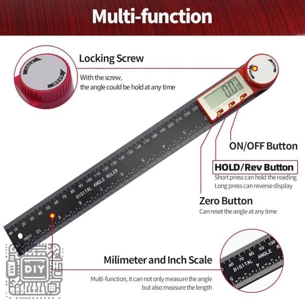 • وظيفة مزدوجة 2 في 1: يعمل كمقياس ميلان رقمي for للميول النسبية وكمنقلة رقمية for الزوايا المطلقة.