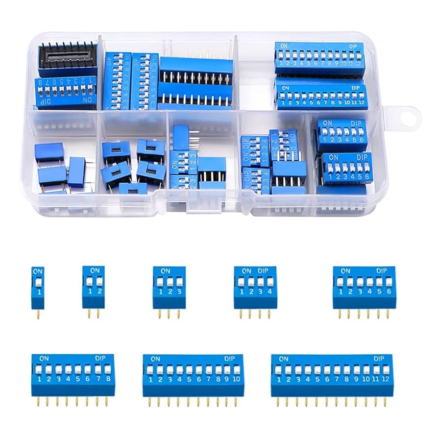Add reliable circuit configuration capabilities to your PCB projects with this versatile 2.54mm Pitch DIP Switch. Available in 2, 4, 6, 8, and 10-position variants, these compact blue switches allow you to easily set, configure, or change the operating mode of your electronic devices without physical rewiring. Perfect for selecting device addresses, setting communication baud rates, configuring hardware options, or enabling test modes in a wide range of applications including industrial control systems, development boards, computer peripherals, and communication equipment. The standard 2.54mm pin spacing makes them compatible with most breadboards, PCBs, and IC sockets, while the durable construction ensures long-term reliability.