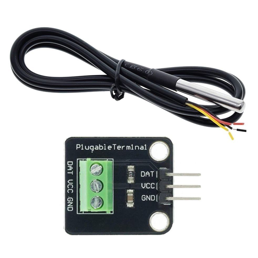 Achieve precise and reliable temperature monitoring in harsh environments with our DS18B20 Waterproof Temperature Sensor Kit. This all-in-one solution includes a high-quality stainless steel probe housing a robust DS18B20 digital sensor, pre-wired with a 1-meter waterproof cable and a convenient terminal adapter board. Perfect for applications involving liquids, moisture, or outdoor conditions