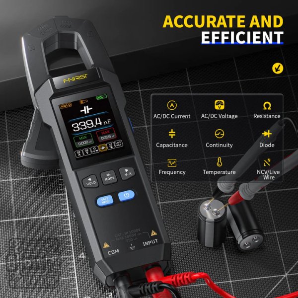 • Multi-functional: Integrates traditional multimeter functions (AC/DC voltage, current, resistance, capacitance, frequency) with component testing.