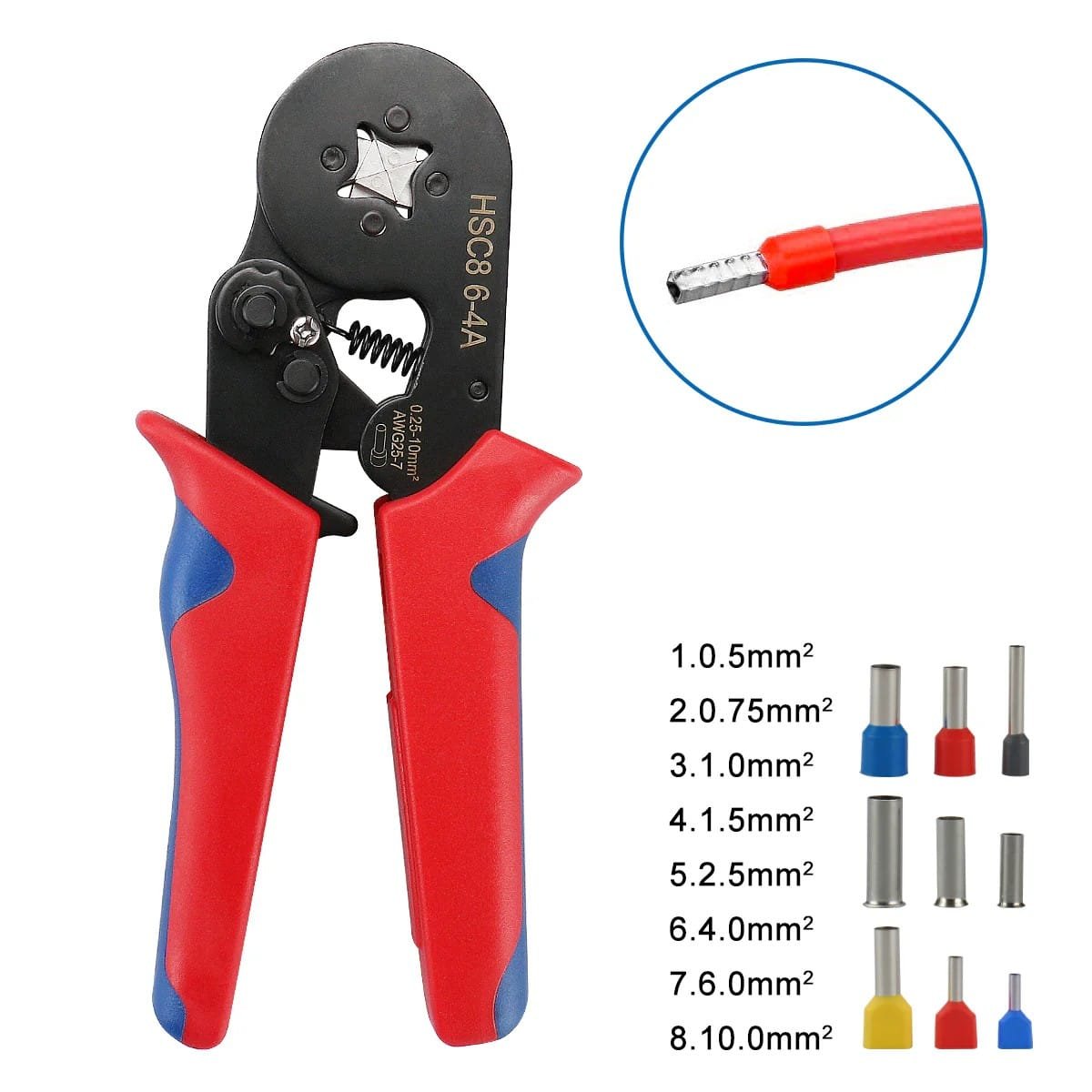 Achieve professional, reliable, and safe electrical connections with the HSC8 Manual Self-Adjusting Crimping Tool. Specifically engineered for crimping bootlace ferrules (also known as wire end sleeves), this essential tool ensures a perfect, gas-tight crimp every time. Its innovative self-adjusting mechanism automatically adapts to the correct crimping pressure for ferrules in the range of HSC8 6-4 (0.25mm² to 6mm² / AWG 22-10)
