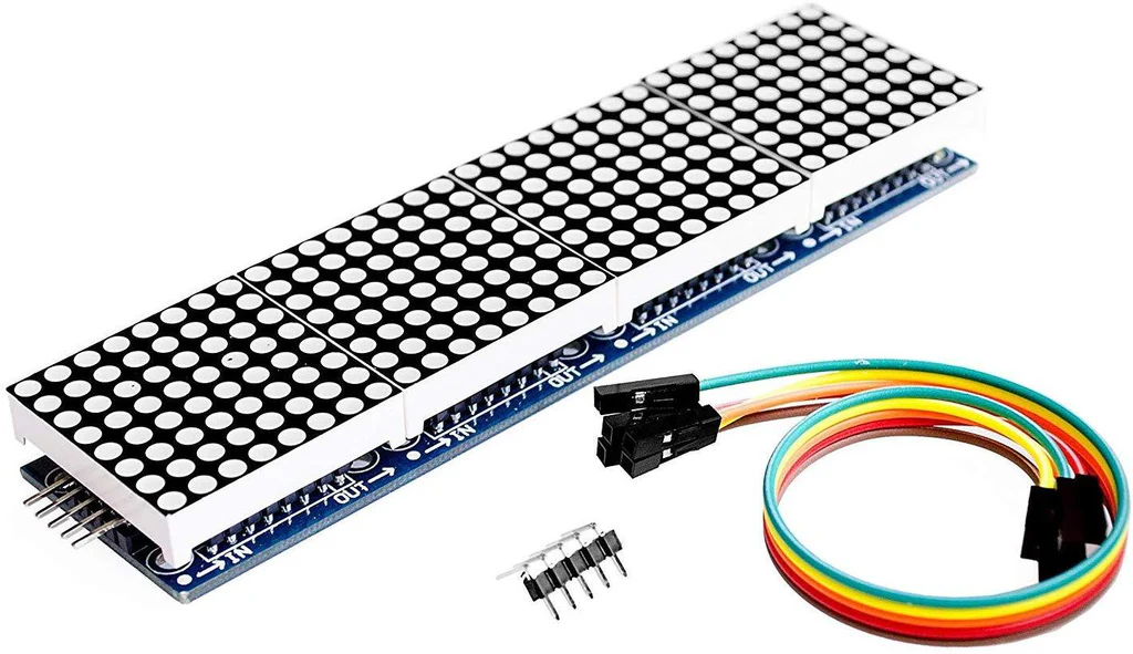 High-Integration 4-in-1 Display: Combines four cascaded 8×8 LED matrices to create a single, continuous 32×8 pixel display area. This design eliminates the need to wire and manage multiple individual modules, saving time, space, and valuable microcontroller I/O pins.