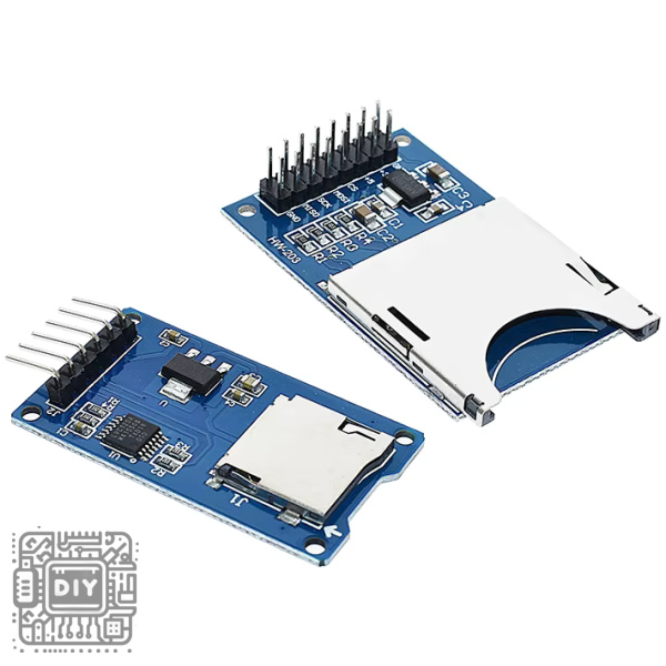 Onboard voltage regulator and level shifting circuitry allow the module to interface safely with both 3.3V and 5V microcontrollers, protecting the SD card while ensuring reliable communication.