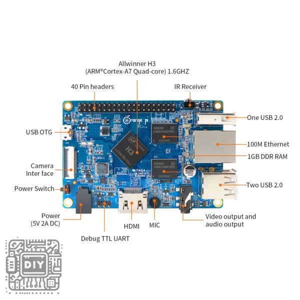 - Processor: Allwinner H3 Quad-Core Cortex-A7.