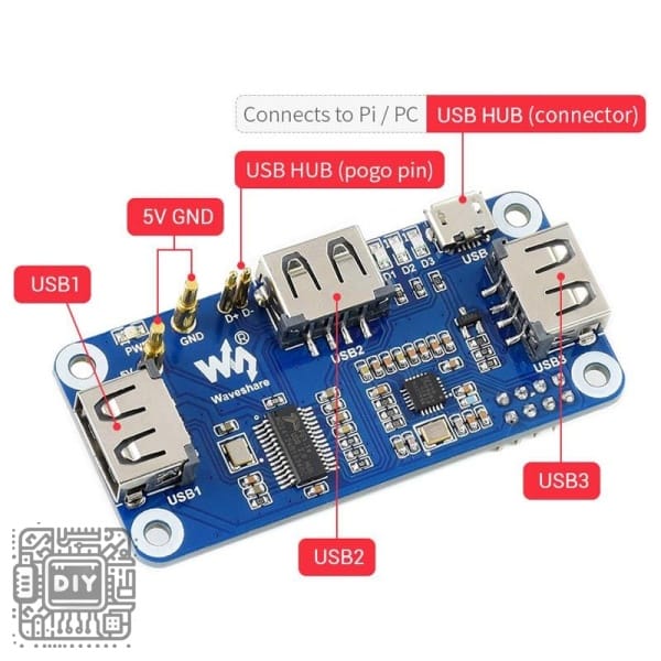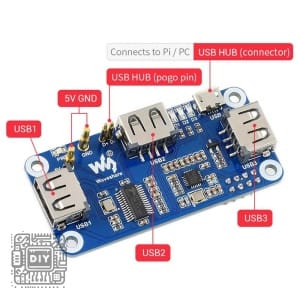 يوسع اتصال USB OTG الوحيد في Pi Zero إلى ثلاثة منافذ USB-A 2.0 مستقلة بالكامل. يتيح هذا الاتصال المباشر لعدة ملحقات USB قياسية، متغلبًا على قيد التوصيل الأكبر لـ Pi Zero.