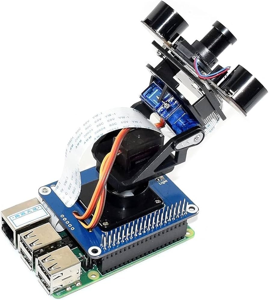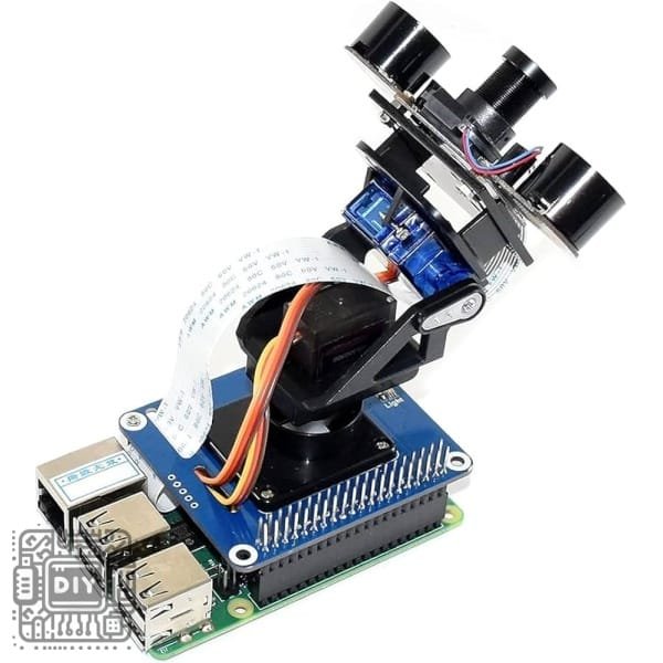 Comes as a kit with all necessary hardware (servos, screws, standoffs). The camera mounts easily to the tilt bracket, and the ribbon cable routes cleanly to the Pi’s CSI port.