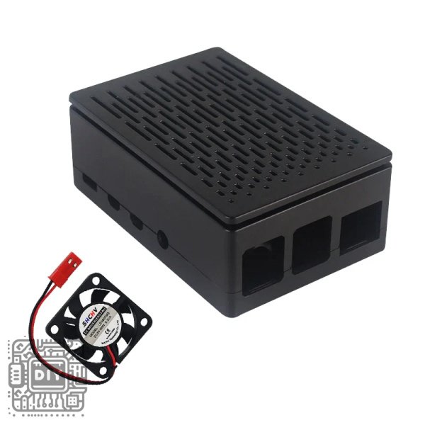 علبة رازبيري باي 5 سوداء مع مروحة تبريد مدمجة