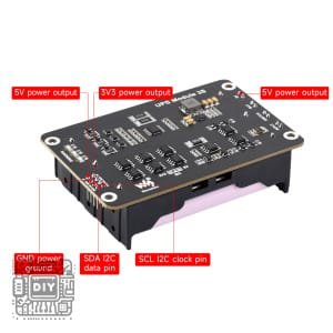 The UPS HAT is built around a high-efficiency power management system that supports three 18650 lithium-ion batteries (not included), providing substantially extended backup power capacity compared to standard 2-cell designs. This expanded battery configuration offers significantly longer runtime for power-intensive applications, remote deployments, and extended operation requirements. The module incorporates advanced battery charging technology with comprehensive protection features including over-charge protection, over-discharge protection, short-circuit protection, over-current protection, and temperature monitoring, ensuring safe and reliable battery operation under various conditions. Real-time battery monitoring is available through the I2C interface, allowing your Raspberry Pi to read individual cell voltages, charging status, remaining capacity, and system power status for intelligent power management and predictive shutdown procedures.