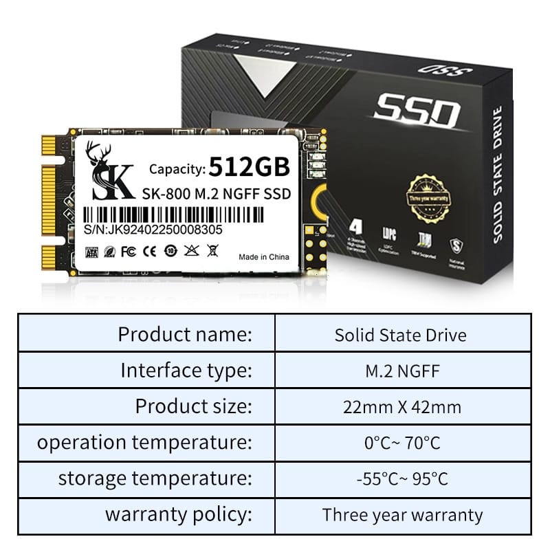 SK M2 NVMe 2242 128GB High-Speed Solid State Drive – 3D TLC Flash Memory
