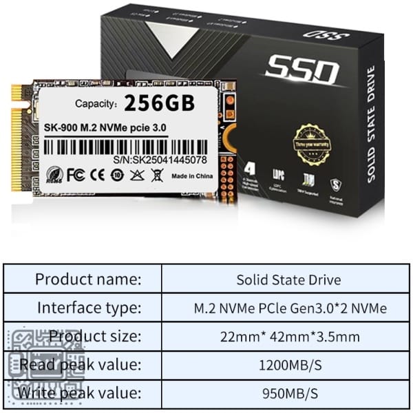 • 1 × قرص SK M2 NVMe 2242 256GB من الحالة الصلبة