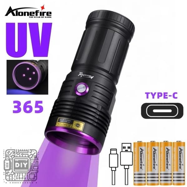 Experience the ultimate in ultraviolet detection with the Alonefire SV74, a monumental 80W professional UV LED flashlight. This powerhouse torch redefines high-performance black light applications, emitting an intense and pure 365nm wavelength that reveals fluorescence with stunning clarity and brightness. Designed for the most demanding tasks, the SV74 is indispensable for industrial-grade UV glue and resin curing, large-scale inspections, and long-range detection. Its extreme power allows you to scan vast areas for scorpions, identify mineral ores from a distance, detect HVAC refrigerant leaks instantly, and uncover pet stains or forensic evidence with unparalleled ease. Built with a robust aluminum body and advanced cooling system, the Alonefire SV74 is the definitive tool for professionals and serious enthusiasts who require the absolute maximum in UV power and coverage.