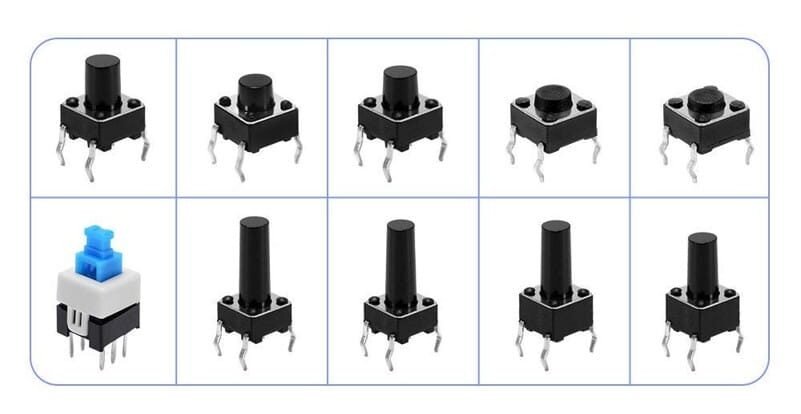 Discover the perfect tactile switch for your electronic projects. Our high-quality through-hole tactile push button switches deliver reliable performance with satisfying tactile feedback and a clear audible click. Available in multiple sizes including 7x7mm and various 6x6mm heights (4.3mm, 5mm, 6mm, 7mm, 8mm, 9mm, 11mm, 12mm), these switches are essential components for keyboards, control panels, consumer electronics, and DIY Arduino/Raspberry Pi projects. Each switch features a long mechanical life of 50,000+ actuations and easy PCB mounting with standard 4-pin through-hole design. Select the perfect size and height variation that matches your specific design requirements and PCB layout.