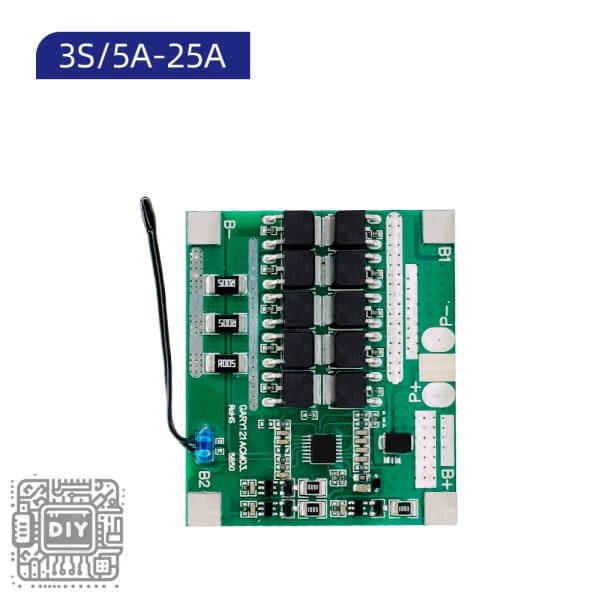 Protect your lithium-ion battery packs with the 3S 20A BMS with Balance. This Battery Management System is an essential safety and performance component for any DIY battery project or device. It’s compatible with a variety of 3-cell battery chemistries, including NMC, Li-ion, LiPo4, and LiFePO4 batteries with a nominal voltage of 3.7V. The built-in cell balancing feature ensures all cells are charged and discharged evenly, maximizing your battery pack’s lifespan and performance. With a continuous discharge current of up to 20A, it’s perfect for a wide range of applications from electric bikes and drones to portable power banks and power tools. The integrated NTC (Negative Temperature Coefficient) function provides crucial over-temperature protection, preventing overheating and ensuring safe operation under load.