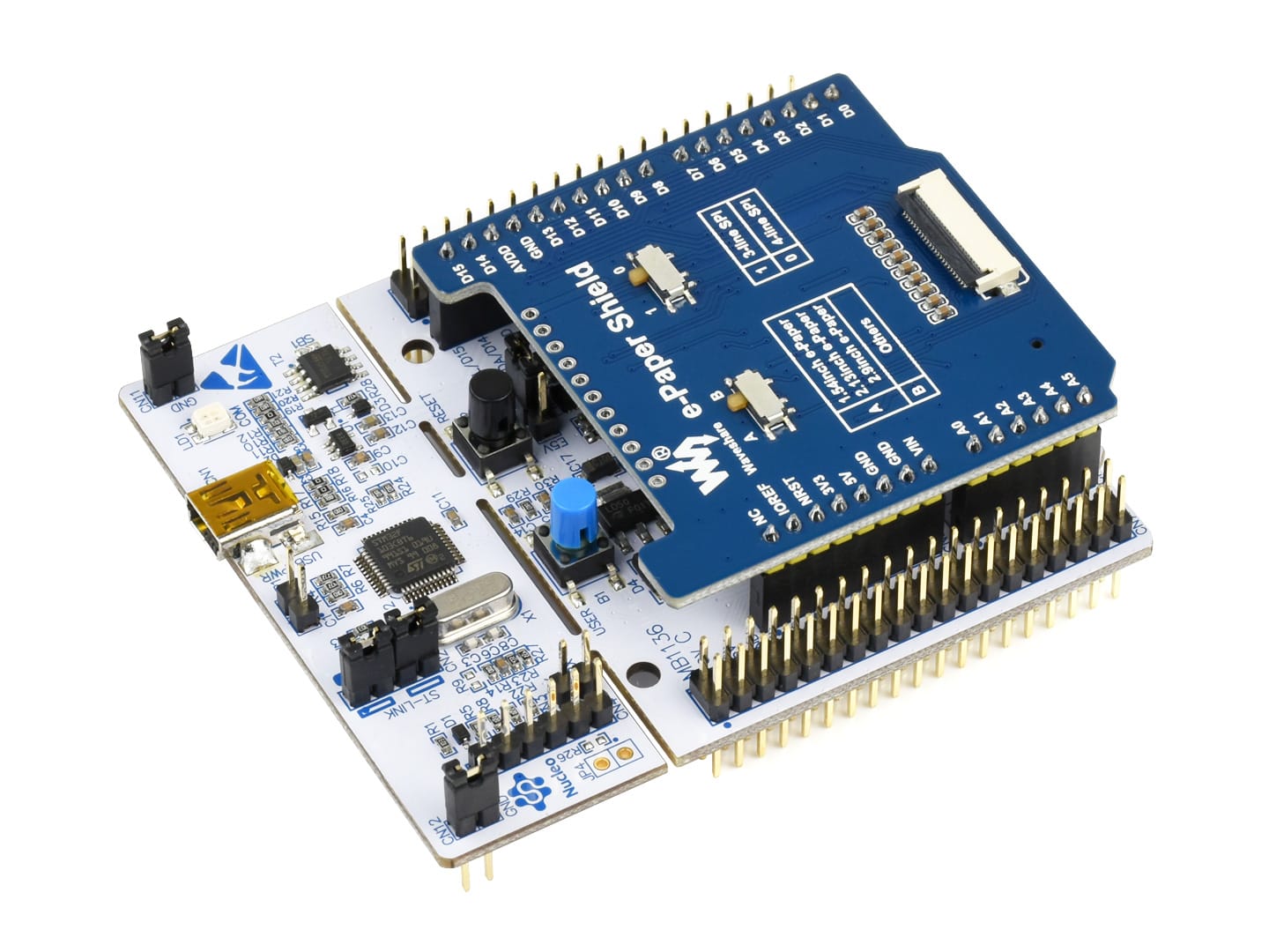 Stacks directly onto an Arduino Uno or Mega, utilizing the SPI and digital pins for control. This provides a clean, integrated hardware platform for developing and deploying E-Paper applications.