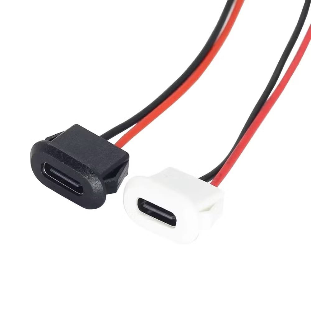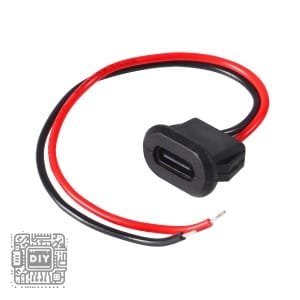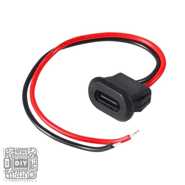 Integrate modern USB-C charging capability into your projects with this Snap-in USB-C Female Connector featuring 2 open wires for power-only applications. This Type-C charging port provides a clean, professional installation with its snap-in design that securely mounts in project enclosures without additional hardware. With only two wires (Red for VCC +5V and Black for GND), this simplified connector is perfect for charging applications where data transfer is not required. Ideal for DIY power banks, custom charging docks, Arduino projects, and any application needing USB-C power input. The compact design and easy snap-in installation make this connector the perfect solution for adding modern USB-C charging to your custom electronics projects.